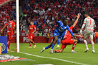 Toluca, Estado de México, 7 de febrero de 2026. Christian Ebere en festejo, durante el partido correspondiente a la jornada 5 del torneo Clausura 2026 de la Liga BBVA MX, entre los Diablos Rojos del Toluca y la Máquina Celeste del Cruz Azul, realizado en el estadio Nemesio Diez. Foto: Imago7/ Arturo Hernández