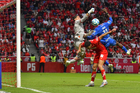 Toluca, Estado de México, 7 de febrero de 2026. Christian Ebere, durante el partido correspondiente a la jornada 5 del torneo Clausura 2026 de la Liga BBVA MX, entre los Diablos Rojos del Toluca y la Máquina Celeste del Cruz Azul, realizado en el estadio Nemesio Diez. Foto: Imago7/ Rafael Vadillo