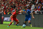 Toluca, Estado de México, 7 de febrero de 2026. Paulinho y Erick Lira, durante el partido correspondiente a la jornada 5 del torneo Clausura 2026 de la Liga BBVA MX, entre los Diablos Rojos del Toluca y la Máquina Celeste del Cruz Azul, realizado en el estadio Nemesio Diez. Foto: Imago7/ Arturo Hernández
