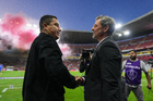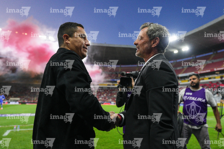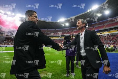 Guadalajara, Jalisco, 7 de febrero de 2026. Efraín Juárez, director técnico y Diego Cocca, director técnico, durante el partido correspondiente a la jornada 5 del torneo Clausura 2026 de la Liga BBVA MX, entre los Rojinegros del Atlas y los Pumas de la UNAM, realizado en el estadio Jalisco. Foto: Imago7/ Hugo Ramirez