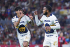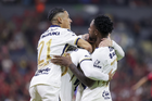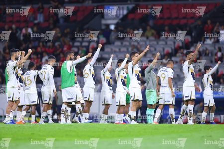 Guadalajara, Jalisco, 7 de febrero de 2026. Jugadores de Pumas en festejo, durante el partido correspondiente a la jornada 5 del torneo Clausura 2026 de la Liga BBVA MX, entre los Rojinegros del Atlas y los Pumas de la UNAM, realizado en el estadio Jalisco. Foto: Imago7/Cristian Hernandez