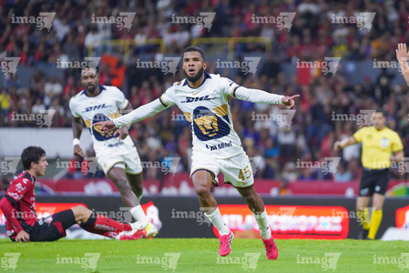 Guadalajara, Jalisco, 7 de febrero de 2026. Diego González en festejo, durante el partido correspondiente a la jornada 5 del torneo Clausura 2026 de la Liga BBVA MX, entre los Rojinegros del Atlas y los Pumas de la UNAM, realizado en el estadio Jalisco. Foto: Imago7/ Juan Carlos Cubeyro.