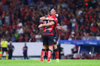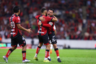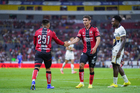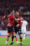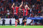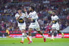 Guadalajara, Jalisco, 7 de febrero de 2026. Uriel Antuna y Juninho Vieira en festejo de gol, durante el partido correspondiente a la jornada 5 del torneo Clausura 2026 de la Liga BBVA MX, entre los Rojinegros del Atlas y los Pumas de la UNAM, realizado en el estadio Jalisco. Foto: Imago7/ Hugo Ramirez
