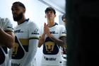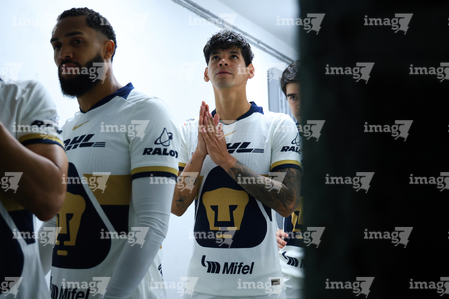 Guadalajara, Jalisco, 7 de febrero de 2026. Jugadores de Pumas, durante el partido correspondiente a la jornada 5 del torneo Clausura 2026 de la Liga BBVA MX, entre los Rojinegros del Atlas y los Pumas de la UNAM, realizado en el estadio Jalisco. Foto: Imago7/ Juan Carlos Cubeyro.