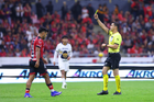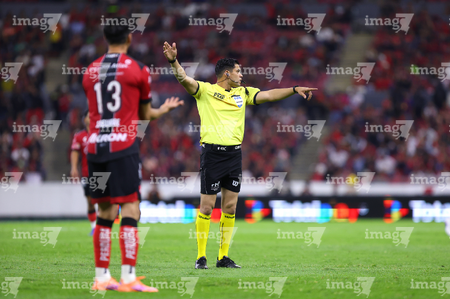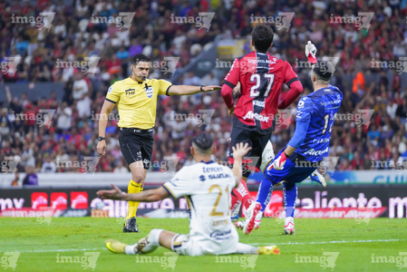 Guadalajara, Jalisco, 7 de febrero de 2026. Jorge Abraham Camacho, árbitro central, durante el partido correspondiente a la jornada 5 del torneo Clausura 2026 de la Liga BBVA MX, entre los Rojinegros del Atlas y los Pumas de la UNAM, realizado en el estadio Jalisco. Foto: Imago7/Cristian Hernandez