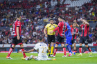 Guadalajara, Jalisco, 7 de febrero de 2026. Rubén Duarte resultó lesionado, durante el partido correspondiente a la jornada 5 del torneo Clausura 2026 de la Liga BBVA MX, entre los Rojinegros del Atlas y los Pumas de la UNAM, realizado en el estadio Jalisco. Foto: Imago7/ Juan Carlos Cubeyro.