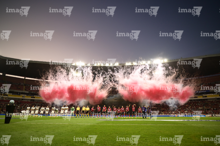 Guadalajara, Jalisco, 7 de febrero de 2026. Protocolo, durante el partido correspondiente a la jornada 5 del torneo Clausura 2026 de la Liga BBVA MX, entre los Rojinegros del Atlas y los Pumas de la UNAM, realizado en el estadio Jalisco. Foto: Imago7/ Juan Carlos Cubeyro.