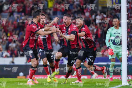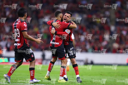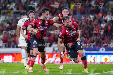 Guadalajara, Jalisco, 7 de febrero de 2026. Jugadores del Atlas en festejo de gol, durante el partido correspondiente a la jornada 5 del torneo Clausura 2026 de la Liga BBVA MX, entre los Rojinegros del Atlas y los Pumas de la UNAM, realizado en el estadio Jalisco. Foto: Imago7/ Hugo Ramirez
