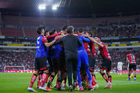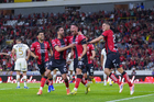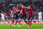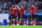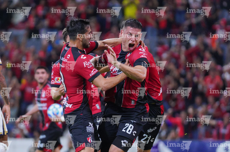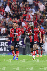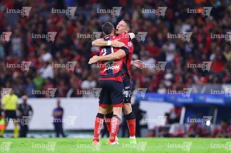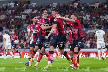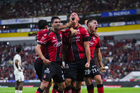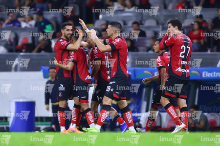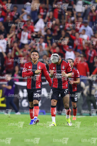 Guadalajara, Jalisco, 7 de febrero de 2026. Jugadores de Atlas en festejo, durante el partido correspondiente a la jornada 5 del torneo Clausura 2026 de la Liga BBVA MX, entre los Rojinegros del Atlas y los Pumas de la UNAM, realizado en el estadio Jalisco. Foto: Imago7/ Juan Carlos Cubeyro.