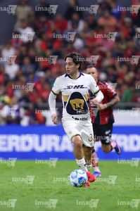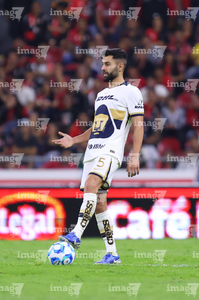 Guadalajara, Jalisco, 7 de febrero de 2026. Eduardo Aguirre, durante el partido correspondiente a la jornada 5 del torneo Clausura 2026 de la Liga BBVA MX, entre los Rojinegros del Atlas y los Pumas de la UNAM, realizado en el estadio Jalisco. Foto: Imago7/ Juan Carlos Cubeyro.