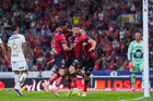 Guadalajara, Jalisco, 7 de febrero de 2026. Manuel Capasso anota gol, durante el partido correspondiente a la jornada 5 del torneo Clausura 2026 de la Liga BBVA MX, entre los Rojinegros del Atlas y los Pumas de la UNAM, realizado en el estadio Jalisco. Foto: Imago7/ Hugo Ramirez