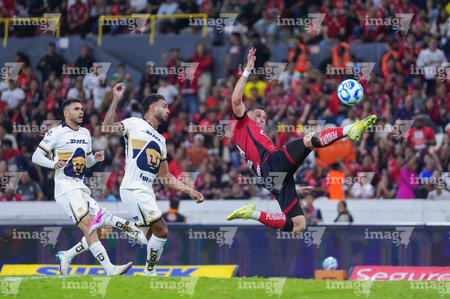 Guadalajara, Jalisco, 7 de febrero de 2026. Gustavo Ferrareis (I), durante el partido correspondiente a la jornada 5 del torneo Clausura 2026 de la Liga BBVA MX, entre los Rojinegros del Atlas y los Pumas de la UNAM, realizado en el estadio Jalisco. Foto: Imago7/ Hugo Ramirez