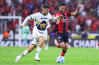 Guadalajara, Jalisco, 7 de febrero de 2026. Gustavo Del Prete y Pedro Vite, durante el partido correspondiente a la jornada 5 del torneo Clausura 2026 de la Liga BBVA MX, entre los Rojinegros del Atlas y los Pumas de la UNAM, realizado en el estadio Jalisco. Foto: Imago7/ Hugo Ramirez