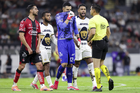 Guadalajara, Jalisco, 7 de febrero de 2026. Mateo García en reclamo a Alberto Morin, árbitro asistente, durante el partido correspondiente a la jornada 5 del torneo Clausura 2026 de la Liga BBVA MX, entre los Rojinegros del Atlas y los Pumas de la UNAM, realizado en el estadio Jalisco. Foto: Imago7/ Hugo Ramirez