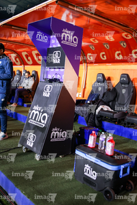 Pachuca, Hidalgo, 7 de febrero de 2026. Cabina del sistema de video asistente del árbitro VAR y hielera de Jumex Mia, durante el partido correspondiente a la jornada 5 del torneo Clausura 2026 de la Liga BBVA MX, entre los Tuzos del Pachuca y los Bravos de FC Juárez, realizado en el estadio Hidalgo. Foto: Imago7/ Elizabeth Hernández