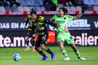 Pachuca, Hidalgo, 7 de febrero de 2026. Javier Aquino y Sergio Barreto, durante el partido correspondiente a la jornada 5 del torneo Clausura 2026 de la Liga BBVA MX, entre los Tuzos del Pachuca y los Bravos de FC Juárez, realizado en el estadio Hidalgo. Foto: Imago7/ Elizabeth Hernández