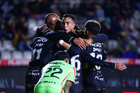 Pachuca, Hidalgo, 7 de febrero de 2026. Jugadores de Pachuca en festejo de gol, durante el partido correspondiente a la jornada 5 del torneo Clausura 2026 de la Liga BBVA MX, entre los Tuzos del Pachuca y los Bravos de FC Juárez, realizado en el estadio Hidalgo. Foto: Imago7/ Elizabeth Hernández