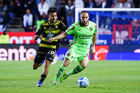 Pachuca, Hidalgo, 7 de febrero de 2026. Salomón Rondon y Moises Castillo, durante el partido correspondiente a la jornada 5 del torneo Clausura 2026 de la Liga BBVA MX, entre los Tuzos del Pachuca y los Bravos de FC Juárez, realizado en el estadio Hidalgo. Foto: Imago7/ Jacqueline Pedraza