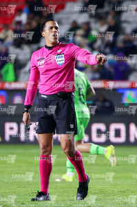 Pachuca, Hidalgo, 7 de febrero de 2026. Daniel Quintero Huitrón, árbitro central, durante el partido correspondiente a la jornada 5 del torneo Clausura 2026 de la Liga BBVA MX, entre los Tuzos del Pachuca y los Bravos de FC Juárez, realizado en el estadio Hidalgo. Foto: Imago7/ Elizabeth Hernández