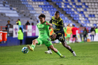Pachuca, Hidalgo, 7 de febrero de 2026. Denzell García (D), durante el partido correspondiente a la jornada 5 del torneo Clausura 2026 de la Liga BBVA MX, entre los Tuzos del Pachuca y los Bravos de FC Juárez, realizado en el estadio Hidalgo. Foto: Imago7/ Elizabeth Hernández