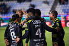 Pachuca, Hidalgo, 7 de febrero de 2026. Jugadores de Pachuca en festejo de gol, durante el partido correspondiente a la jornada 5 del torneo Clausura 2026 de la Liga BBVA MX, entre los Tuzos del Pachuca y los Bravos de FC Juárez, realizado en el estadio Hidalgo. Foto: Imago7/ Jacqueline Pedraza