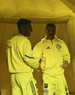 Ciudad de México, 7 de febrero de 2026. Sergio Canales y Jonathan Dos Santos, durante el partido correspondiente a la jornada 5 del torneo Clausura 2026 de la Liga BBVA MX, entre las Águilas del América y los Rayados del Monterrey, realizado en el estadio Ciudad de los Deportes. Foto: Imago7/ Etzel Espinosa