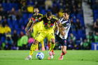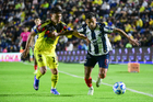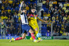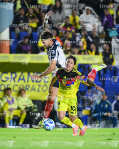 Ciudad de México, 7 de febrero de 2026. Sebastián Cáceres y Jonathan Dos Santos, durante el partido correspondiente a la jornada 5 del torneo Clausura 2026 de la Liga BBVA MX, entre las Águilas del América y los Rayados del Monterrey, realizado en el estadio Ciudad de los Deportes. Foto: Imago7/ Etzel Espinosa
