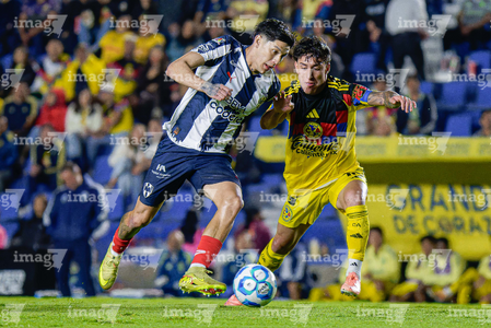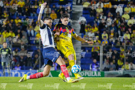 Ciudad de México, 7 de febrero de 2026. Kevin Álvarez y Fidel Ambríz, durante el partido correspondiente a la jornada 5 del torneo Clausura 2026 de la Liga BBVA MX, entre las Águilas del América y los Rayados del Monterrey, realizado en el estadio Ciudad de los Deportes. Foto: Imago7/ Diego Padilla