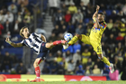 Ciudad de México, 7 de febrero de 2026. Henry Martín y Daniel Aceves, durante el partido correspondiente a la jornada 5 del torneo Clausura 2026 de la Liga BBVA MX, entre las Águilas del América y los Rayados del Monterrey, realizado en el estadio Ciudad de los Deportes. Foto: Imago7/ Etzel Espinosa