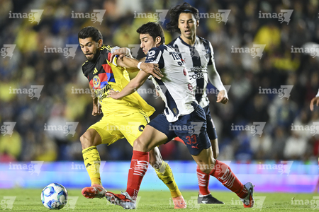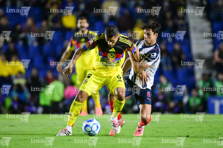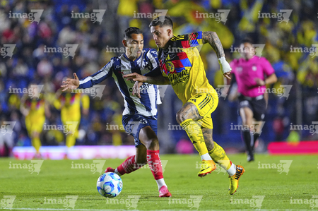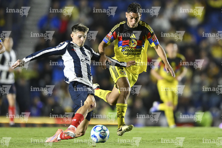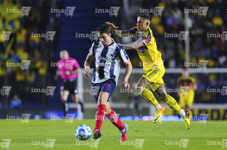 Ciudad de México, 7 de febrero de 2026. Lucas Ocampos y Israel Reyes, durante el partido correspondiente a la jornada 5 del torneo Clausura 2026 de la Liga BBVA MX, entre las Águilas del América y los Rayados del Monterrey, realizado en el estadio Ciudad de los Deportes. Foto: Imago7/ Etzel Espinosa