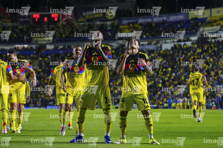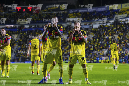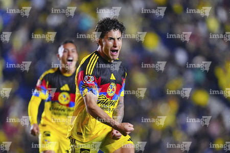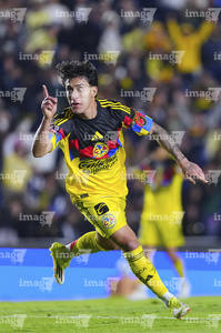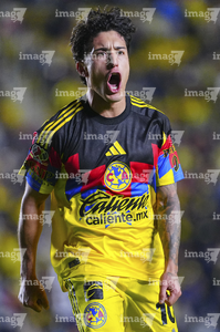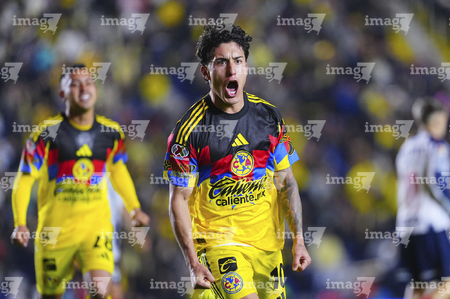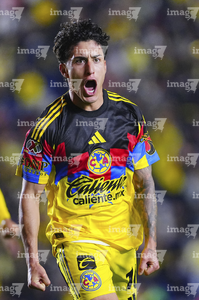 Ciudad de México, 7 de febrero de 2026. Alejandro Zendejas en festejo de gol, durante el partido correspondiente a la jornada 5 del torneo Clausura 2026 de la Liga BBVA MX, entre las Águilas del América y los Rayados del Monterrey, realizado en el estadio Ciudad de los Deportes. Foto: Imago7/ Etzel Espinosa