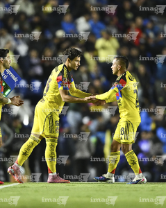 Ciudad de México, 7 de febrero de 2026. Daniel Aceves y Alejandro Zendejas, durante el partido correspondiente a la jornada 5 del torneo Clausura 2026 de la Liga BBVA MX, entre las Águilas del América y los Rayados del Monterrey, realizado en el estadio Ciudad de los Deportes. Foto: Imago7/ Manlio Contreras