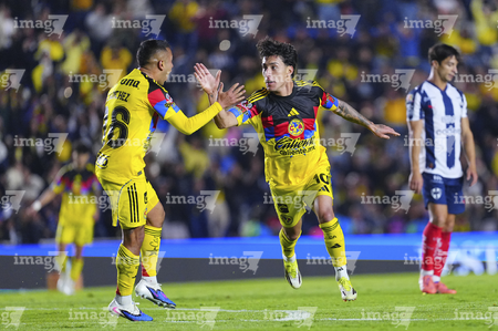 Ciudad de México, 7 de febrero de 2026. Alejandro Zendejas en festejo de gol, durante el partido correspondiente a la jornada 5 del torneo Clausura 2026 de la Liga BBVA MX, entre las Águilas del América y los Rayados del Monterrey, realizado en el estadio Ciudad de los Deportes. Foto: Imago7/ Manlio Contreras