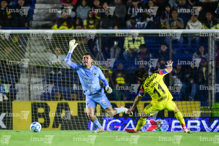 Ciudad de México, 7 de febrero de 2026. Víctor Dávila y Luis Cárdenas, durante el partido correspondiente a la jornada 5 del torneo Clausura 2026 de la Liga BBVA MX, entre las Águilas del América y los Rayados del Monterrey, realizado en el estadio Ciudad de los Deportes. Foto: Imago7/ Diego Padilla