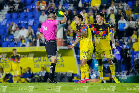 Ciudad de México, 7 de febrero de 2026. Brian Rodríguez en reclamo, durante el partido correspondiente a la jornada 5 del torneo Clausura 2026 de la Liga BBVA MX, entre las Águilas del América y los Rayados del Monterrey, realizado en el estadio Ciudad de los Deportes. Foto: Imago7/ Alexis Chavez