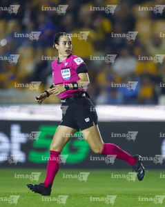 San Nicolás de los Garza, Nuevo León, 6 de febrero de 2026. Katia Itzel García, árbitra central, durante el partido correspondiente a la jornada 5 del torneo Clausura 2026 de la Liga BBVA MX, entre los Tigres de la UANL y los Guerreros de Santos Laguna, realizado en el estadio Universitario. Foto: Imago7/