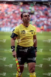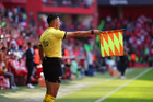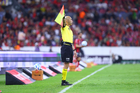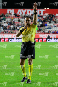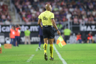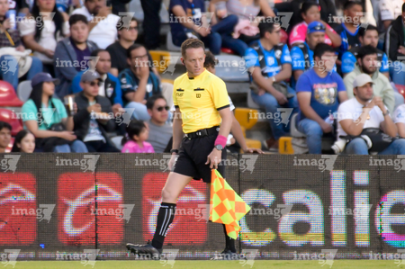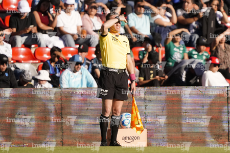 Aguascalientes, Aguascalientes, 6 de febrero de 2026. Marco Antonio Bisguerra, árbitro asistente, durante el partido correspondiente a la jornada 5 del torneo Clausura 2026 de la Liga BBVA MX, entre los Rayos del Necaxa y el Atlético San Luis, realizado en el estadio Victoria. Foto: Imago7/ Pablo Ramírez