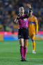 San Nicolás de los Garza, Nuevo León, 6 de febrero de 2026. Karen Díaz, árbitra asistente, durante el partido correspondiente a la jornada 5 del torneo Clausura 2026 de la Liga BBVA MX, entre los Tigres de la UANL y los Guerreros de Santos Laguna, realizado en el estadio Universitario. Foto: Imago7/