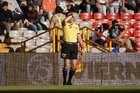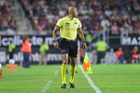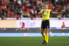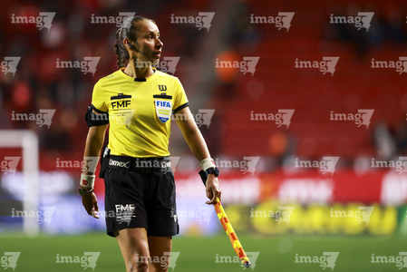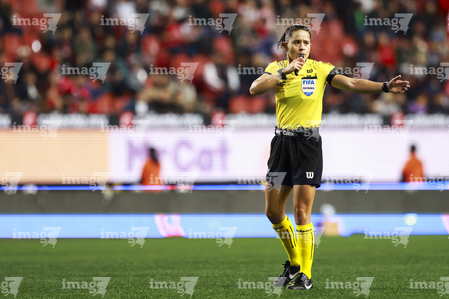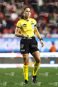Tijuana, Baja California, 6 de febrero de 2026. Karen Hernández Andrade, árbitra central, durante el partido correspondiente a la jornada 5 del torneo Clausura 2026 de la Liga BBVA MX, entre los Xolos de Tijuana y el Club Puebla, celebrado en el estadio Caliente. Foto: Imago7/Alejandro Gutiérrez Mora