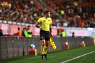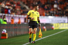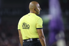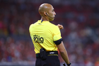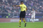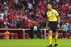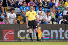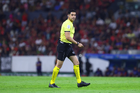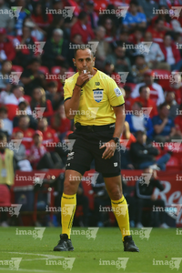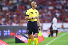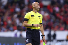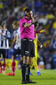 Querétaro, Querétaro, 7 de febrero de 2026. Marco Antonio Ortiz, árbitro central, durante el partido correspondiente a la jornada 5 del torneo Clausura 2026 de la Liga BBVA MX, entre los Gallos Blancos del Querétaro y los Esmeraldas del León, realizado en el estadio La Corregidora. Foto: Imago7/ Duilio Muñoz