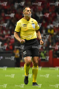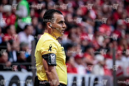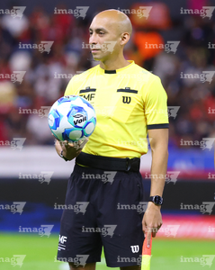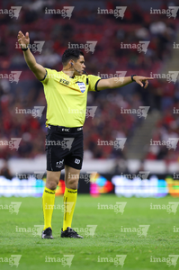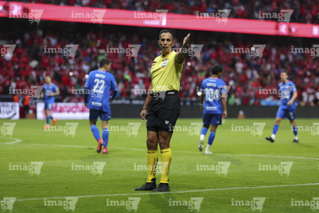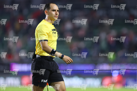 Guadalajara, Jalisco, 7 de febrero de 2026. Jorge Camacho, árbitro central, durante el partido correspondiente a la jornada 5 del torneo Clausura 2026 de la Liga BBVA MX, entre los Rojinegros del Atlas y los Pumas de la UNAM, realizado en el estadio Jalisco. Foto: Imago7/ Juan Carlos Cubeyro.