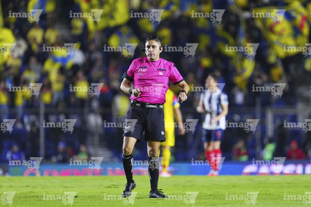 Ciudad de México, 7 de febrero de 2026. Oscar Mejía García, árbitro central, durante el partido correspondiente a la jornada 5 del torneo Clausura 2026 de la Liga BBVA MX, entre las Águilas del América y los Rayados del Monterrey, realizado en el estadio Ciudad de los Deportes. Foto: Imago7/ Diego Padilla