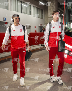 Toluca, Estado de México, 13 de febrero de 2026. Marcel Ruiz y Mourad Daoudi, durante el partido correspondiente a la jornada 6 del torneo Clausura 2026 de la Liga BBVA MX, entre los Diablos Rojos del Toluca y los Xolos de Tijuana, realizado en el estadio Nemesio Diez. Foto: Imago7/ Jesús Esquivel