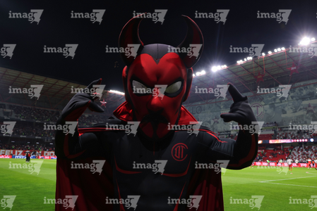 Toluca, Estado de México, 13 de febrero de 2026. Mascota del Toluca, durante el partido correspondiente a la jornada 6 del torneo Clausura 2026 de la Liga BBVA MX, entre los Diablos Rojos del Toluca y los Xolos de Tijuana, realizado en el estadio Nemesio Diez. Foto: Imago7/ Jesús Esquivel