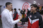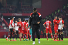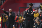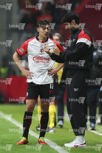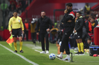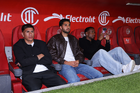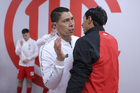 Toluca, Estado de México, 13 de febrero de 2026. Ramiro Árciga y Sebastián "Loco" Abreu, director técnico, durante el partido correspondiente a la jornada 6 del torneo Clausura 2026 de la Liga BBVA MX, entre los Diablos Rojos del Toluca y los Xolos de Tijuana, realizado en el estadio Nemesio Diez. Foto: Imago7/ Rafael Vadillo