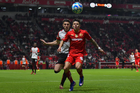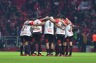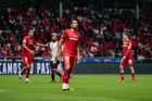 Toluca, Estado de México, 13 de febrero de 2026. Paulinho anota gol, durante el partido correspondiente a la jornada 6 del torneo Clausura 2026 de la Liga BBVA MX, entre los Diablos Rojos del Toluca y los Xolos de Tijuana, realizado en el estadio Nemesio Diez. Foto: Imago7/ Rafael Vadillo