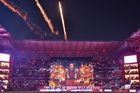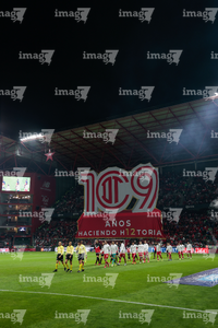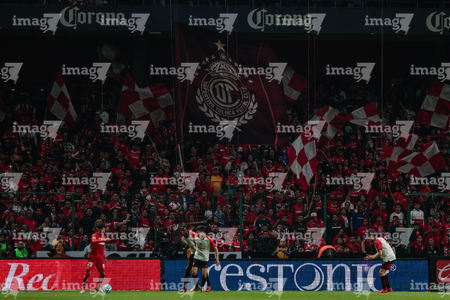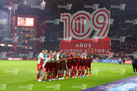 Toluca, Estado de México, 13 de febrero de 2026. Protocolo y Tifo, durante el partido correspondiente a la jornada 6 del torneo Clausura 2026 de la Liga BBVA MX, entre los Diablos Rojos del Toluca y los Xolos de Tijuana, realizado en el estadio Nemesio Diez. Foto: Imago7/ Jesús Esquivel