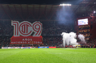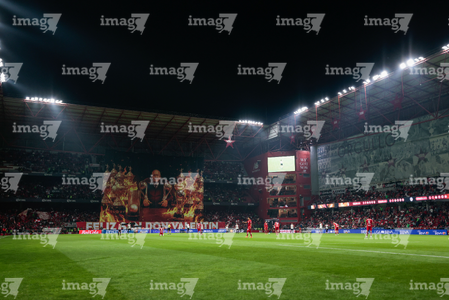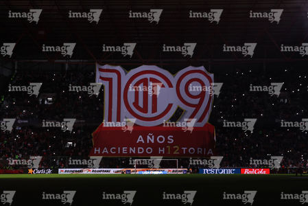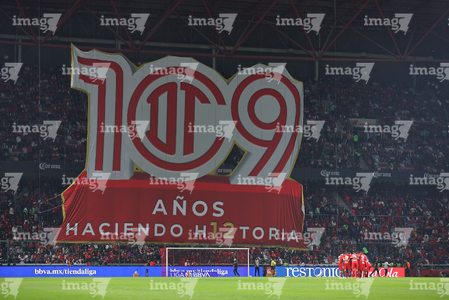Toluca, Estado de México, 13 de febrero de 2026. Tifo, durante el partido correspondiente a la jornada 6 del torneo Clausura 2026 de la Liga BBVA MX, entre los Diablos Rojos del Toluca y los Xolos de Tijuana, realizado en el estadio Nemesio Diez. Foto: Imago7/Daniel Arriaga