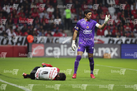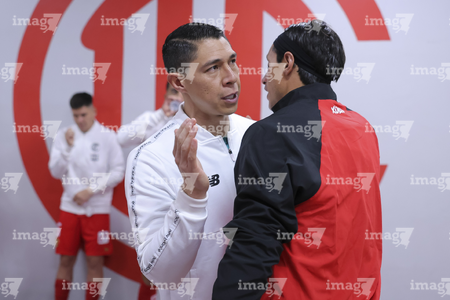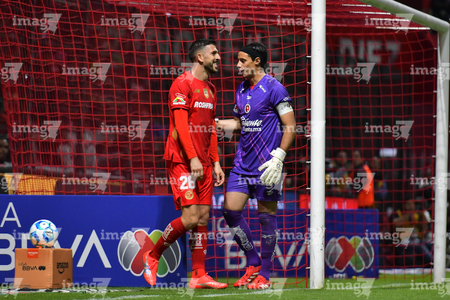 Toluca, Estado de México, 13 de febrero de 2026. Rafael Fernández y Marcel Ruiz, durante el partido correspondiente a la jornada 6 del torneo Clausura 2026 de la Liga BBVA MX, entre los Diablos Rojos del Toluca y los Xolos de Tijuana, realizado en el estadio Nemesio Diez. Foto: Imago7/ Rafael Vadillo