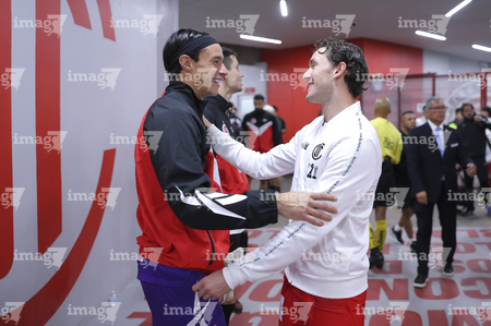 Toluca, Estado de México, 13 de febrero de 2026. José Antonio Rodríguez y Hugo González, durante el partido correspondiente a la jornada 6 del torneo Clausura 2026 de la Liga BBVA MX, entre los Diablos Rojos del Toluca y los Xolos de Tijuana, realizado en el estadio Nemesio Diez. Foto: Imago7/ Rafael Vadillo